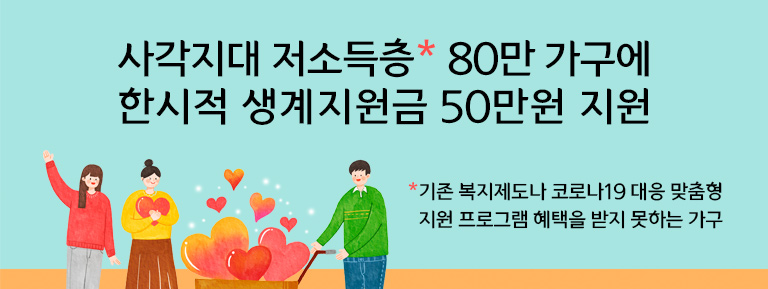 대해 한시적 생계지원금 지급 (80만 가구, 50만 원, +4,066억 원)