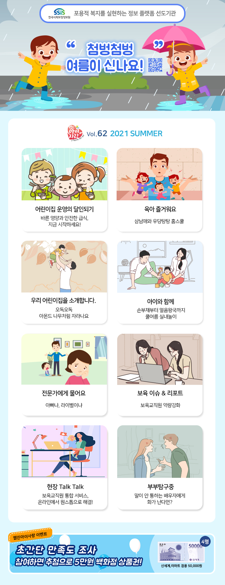 아동 부모, 어린이집 원장, 보육교사분들에게 유용한 정보를 제공하는 웹진 아이사랑 62호가 발간되었습니다.