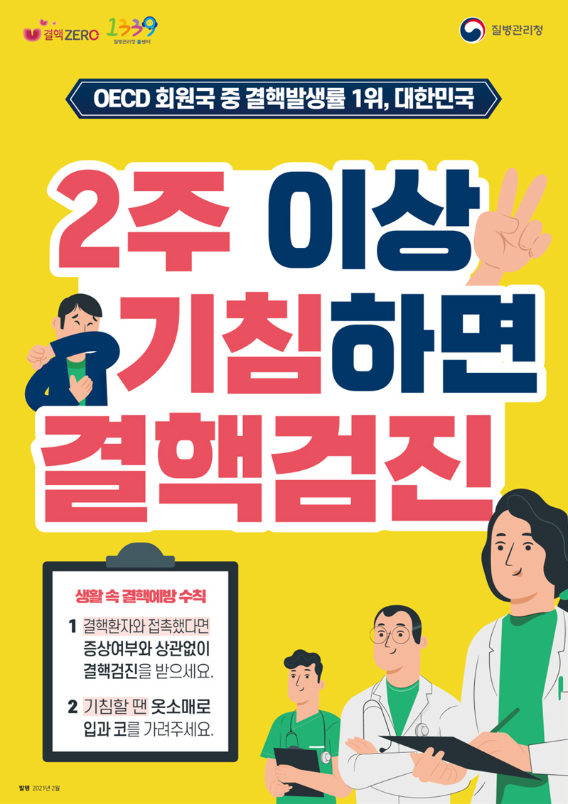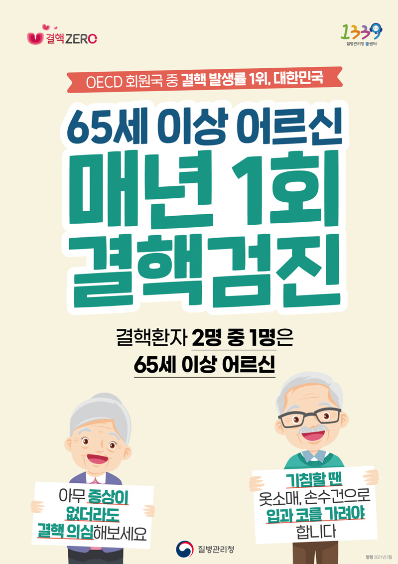 질병관리청의 결핵검진 안내로 대국민용과 어르신용 포스터입니다.