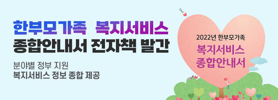 한 곳에 모은 ‘2022년 한부모가족 복지서비스 종합안내서’를 전자책으로 발간했습니다.
