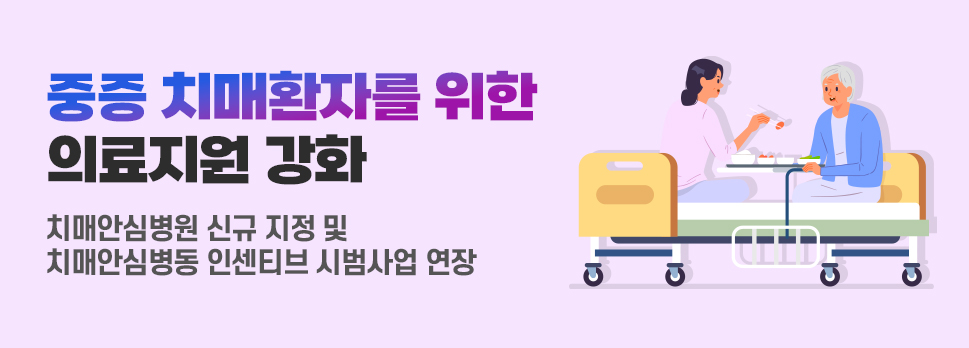 걱정 없이 살던 곳에서 노후생활을 이어갈 수 있도록 치매안심병원을 확대하고