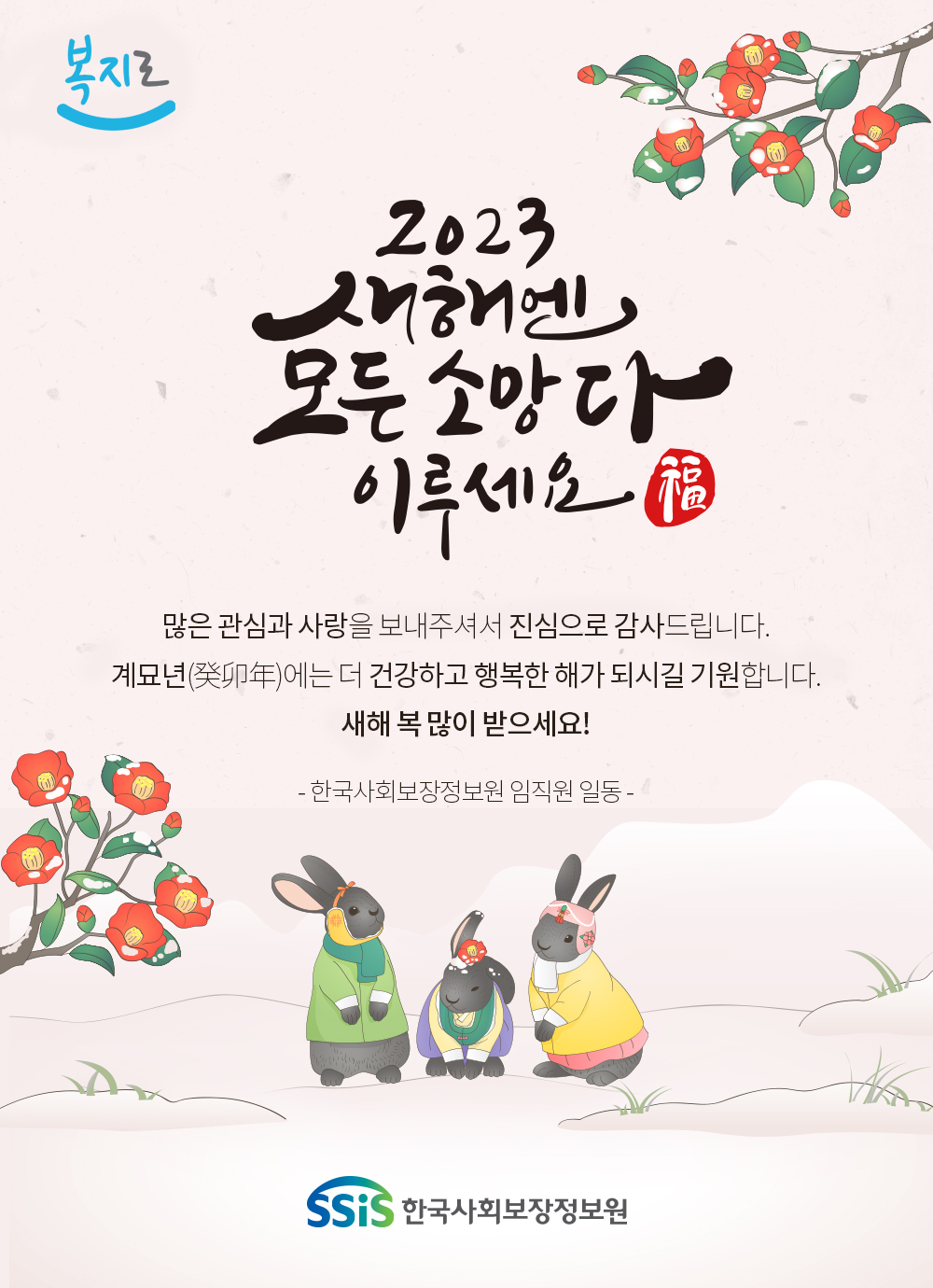 한 해 동안 많은 관심과 사랑을 보내주셔서 진심으로 감사드립니다. 계묘년에는 더욱 건강하고 행복한 해가 되시길 기원합니다.