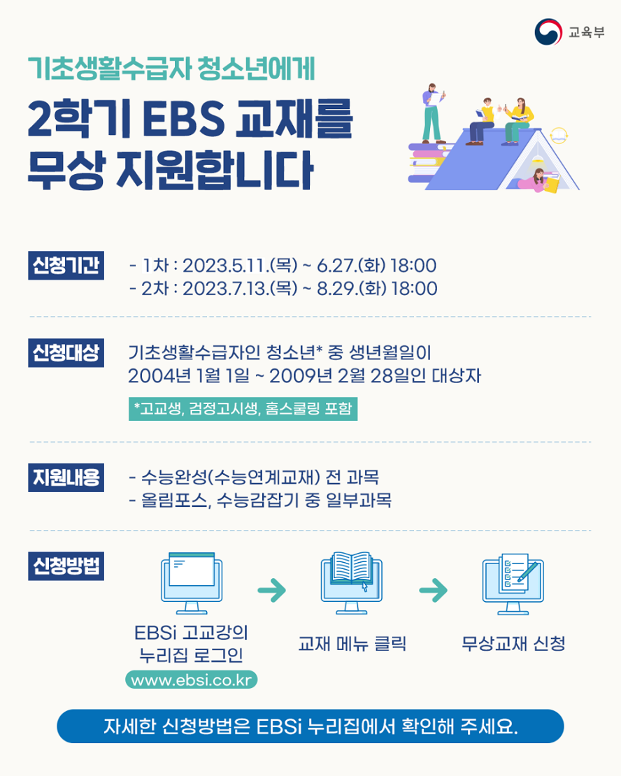 기초생활수급자 청소년 2학기 EBS 교재 무상 지원 안내
