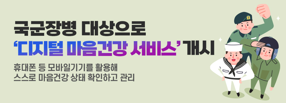 과학기술정보통신부(장관 이종호, 이하 ‘과기정통부’)와 국방부(장관 이종섭)는 9월 4일(월)부터 국군장병을 대상으로 디지털 마음건강 서비스를 개시한다고 밝혔습니다.