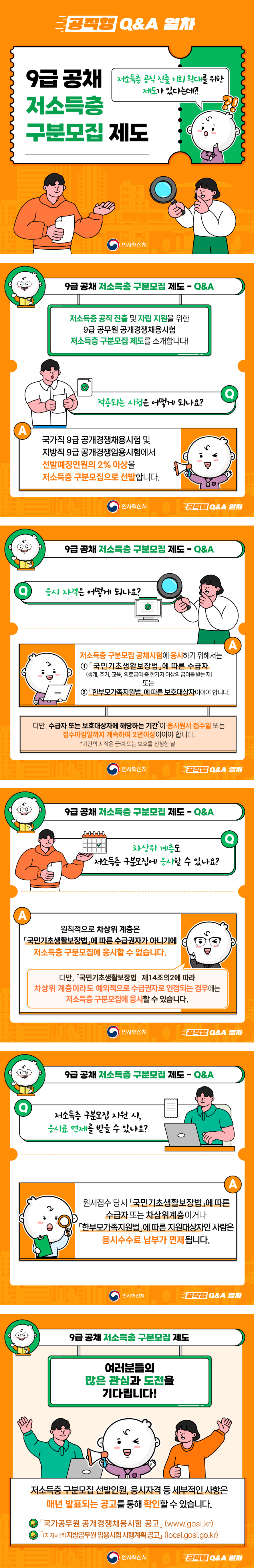 '9급 공무원 공개경쟁채용시험 저소득층 구분모집 제도'를 소개합니다.