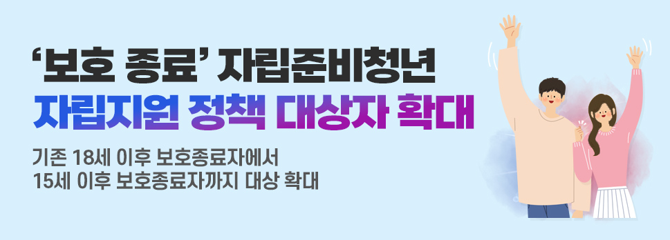 아동복지시설이나 위탁가정에서 보호종료된 자립준비청년을 대상으로 하는 자립수당, 자립지원전담기관 사례관리 등 자립지원 정책 대상자가 기존 18세 이후 보호종료자에서 15세 이후 보호종료자까지 확대된다.