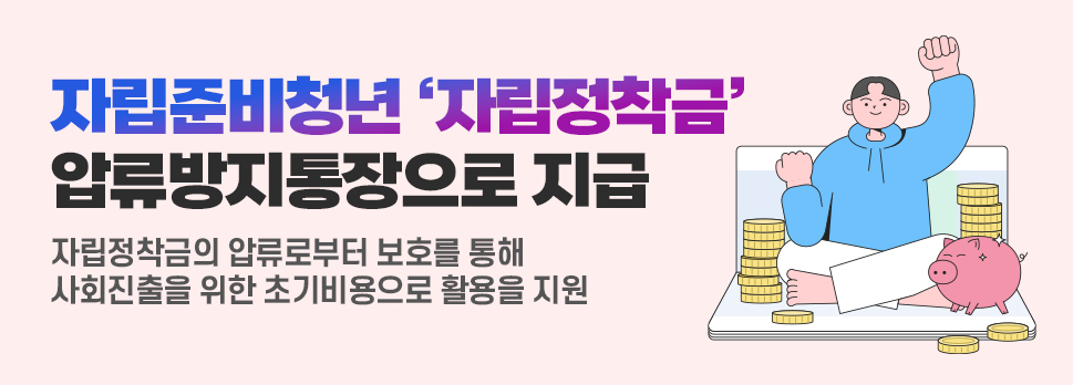 3.8일(금)부터 자립준비청년에게 지급되는 자립정착금도 압류방지통장으로 받을 수 있게 된다.