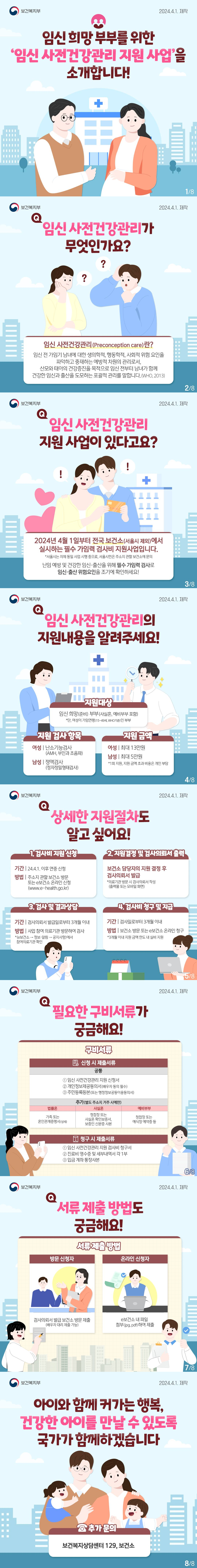 임신 준비부부가 임신·출산의 위험요인을 조기에 파악할 수 있도록 '임신사전건강관리지원사업'을 4월부터 시행합니다.