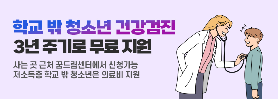 - 사는 곳 근처 꿈드림센터에서 신청 후 자기부담금 없이 건강검진 지원