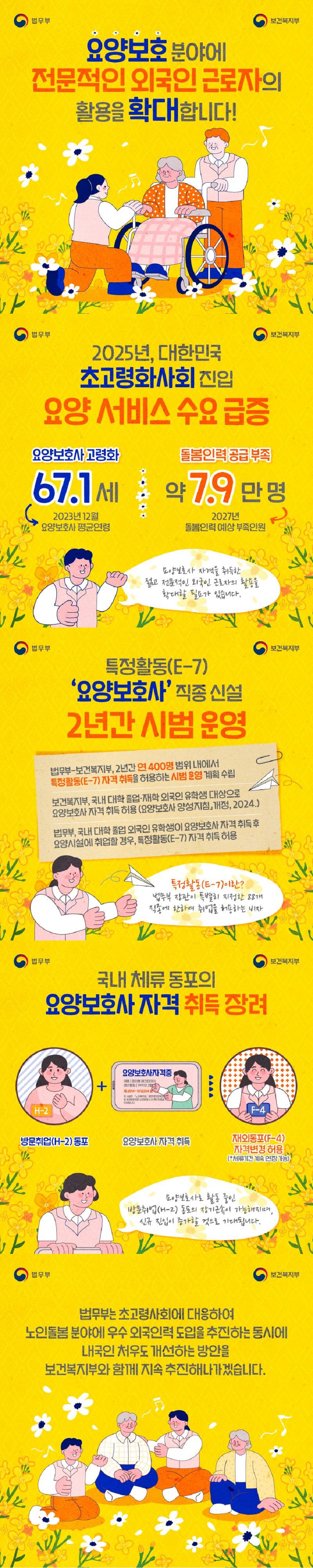 ✔ 특정활동(E-7) '요양보호사' 직종 신설(2년 시범 운영)