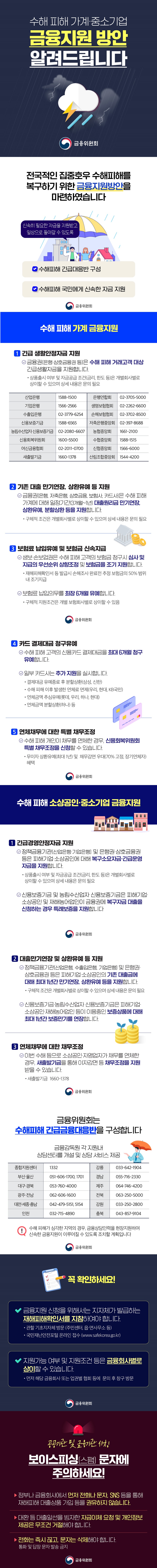 ✔ 수해 피해 소상공인·중소기업 금융지원