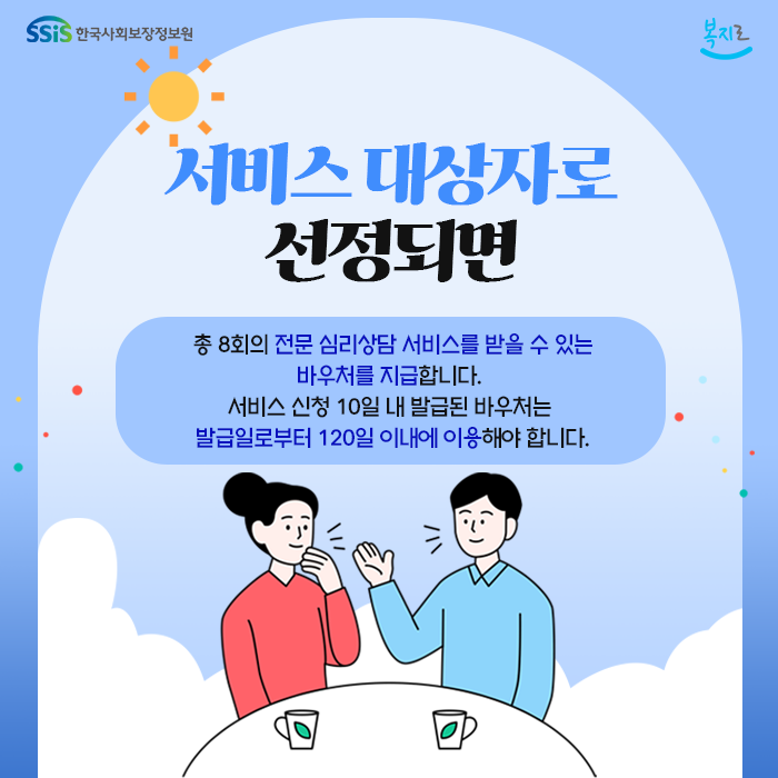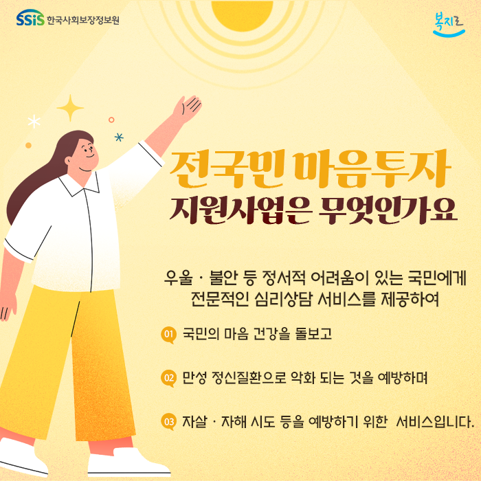 '10월 2일'부터 심리상담 서비스 전국민 마음투자 지원신청 복지로 온라인신청으로 시작하세요!
