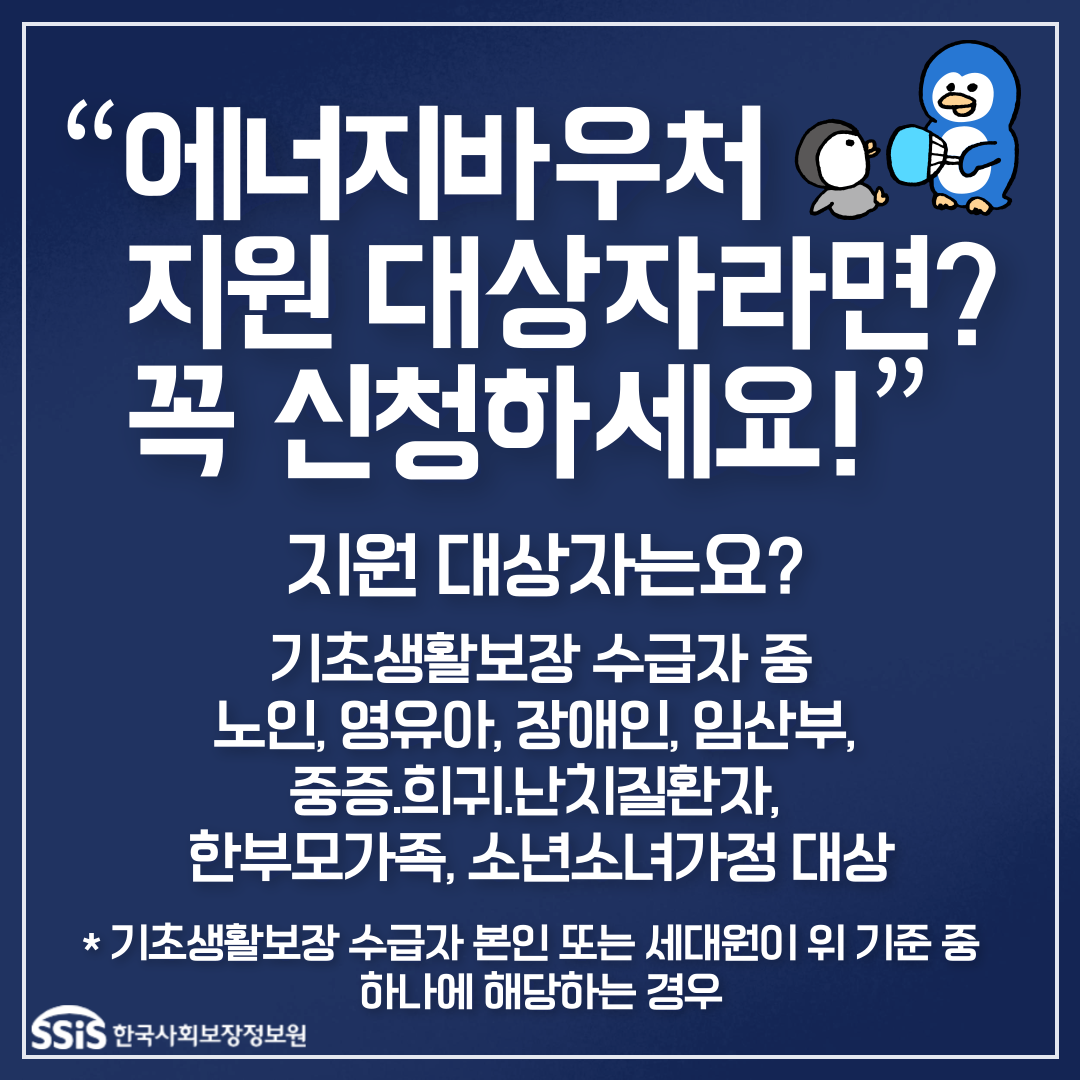 에너지 취약 계층에게 에너지 바우처를 지급하여 전기,가스, 지역 난방, 등유 등 필요 에너지의 이용 비용을 지원하는 서비스입니다.