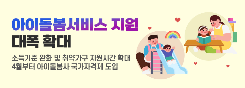 한편, 오는 4월부터 아이돌봄서비스의 전문성과 신뢰성을 높이기 위해 ‘아이돌봄사 국가자격제’와 ‘민간 아이돌봄서비스 제공기관 등록제’가 본격 시행된다.