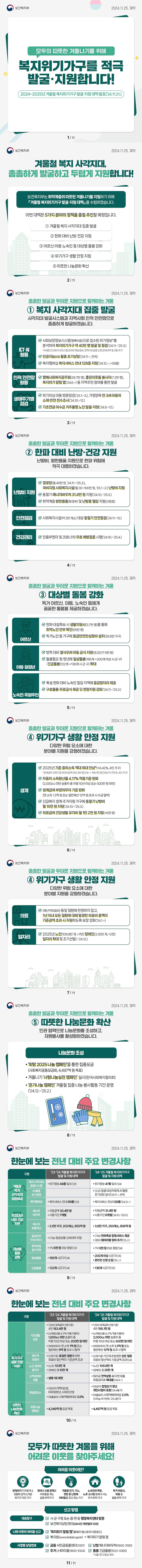 - 12월 2일(월)부터 12월 27일(금)까지 2025년 참여자 집중 모집 -- 2025년 노인일자리 역대 최대 규모 109.8만 개 제공-- 2025년 노인일자리 예산 2조 262억 원 → 2조 1,847억 원으로 대폭 확대 - 보건복지부(장관 조규홍)는 12월 2일(월)부터 2025년 노인일자리 및 사회활동 지원사업(노인공익활동사업, 노익역량활용사업, 공동체사업단, 취업알선형) 참여자를 모집한다고 밝혔다. * 지자체 여건에 따라 모집 시기는 연장될 수 있음. 전국 공통 집중 신청 접수를 12월에 실시 2025년 노인일자리사업 예산은 2조 1,847억원(정부안, 2024년 2조 262억원)으로 초고령사회와 신노년세대 등 다양한 수요에 대응하기 위해 올해보다 6.8만 개를 확대한 109.8..
