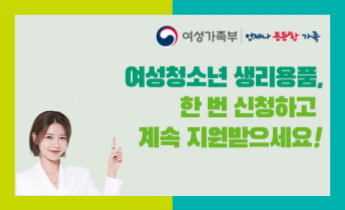 취약계층 여성청소년 대상 생리용품 지원을 통해 여성청소년의 건강한 성장을 지원합니다. ✅ 지원대상 : 9~24세 여성청소년 (기초생활보장급여 수급자, 차상위계층, 한부모가족 지원대상자) ✅ 신청 기간 : 2024년 1월 ~ 12월 24일(화) ✅ 지원 금액 : 월 13,000원 ✅ 신청 방법 : 주소지 읍면동 행정복지센터 방문 또는 복지로 누리집(http://www.bokjiro.go.kr)·앱 아래의 포스터에서 관련 내용 알아보세요😀 출처 : 여성가족부
