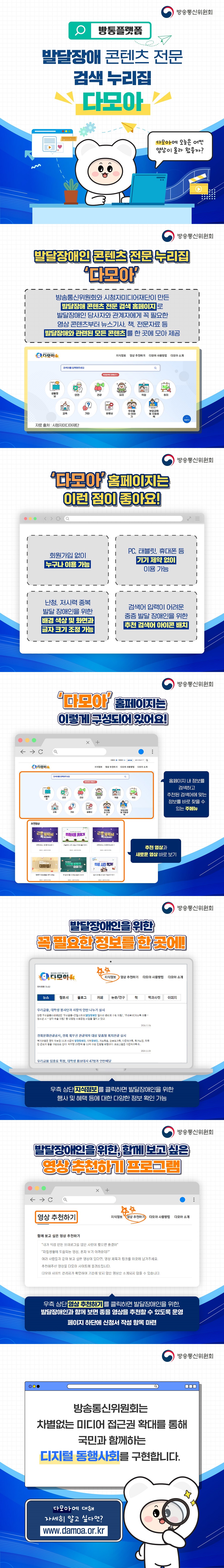 발달장애관련 콘텐츠를 모아둔 ‘다모아’ 발달장애 콘텐츠 전문 검색 누리집, ‘다모아’를 소개합니다. 자세한 사항은 아래 카드뉴스를 통해 확인해 주세요.😊 출처 : 방송통신위원회 ▼ 또 다른 복지로를 소개합니다 ▼ 복지소식/홍보소식 2024.11.27