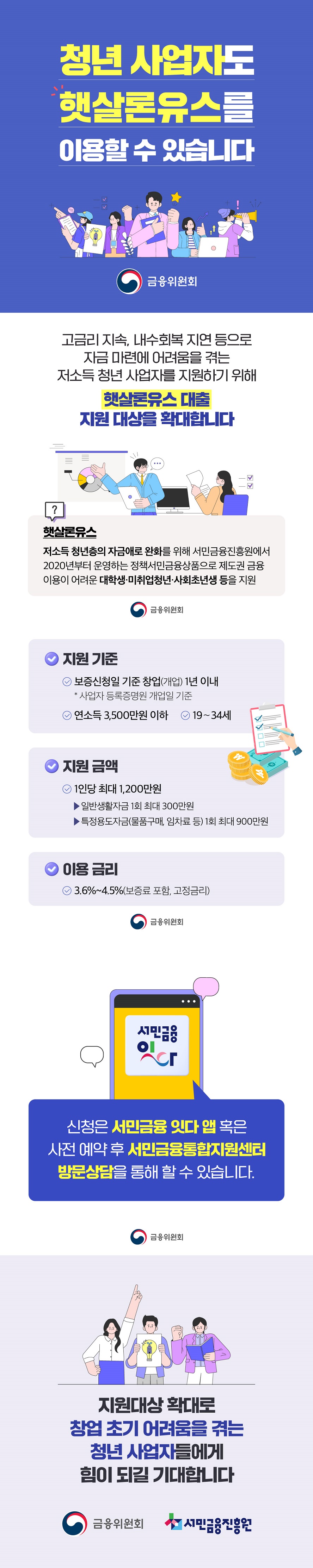 청년 사업자도 햇살론유스 이용 가능 10월 31일(목)부터 청년 사업자도 햇살론유스를 이용할 수 있습니다. 자세한 사항은 아래 카드뉴스를 통해 확인해 주세요. 출처 : 금융위원회 ▼ 또 다른 복지로를 소개합니다 ▼ 복지소식/홍보소식 2024.11.12
