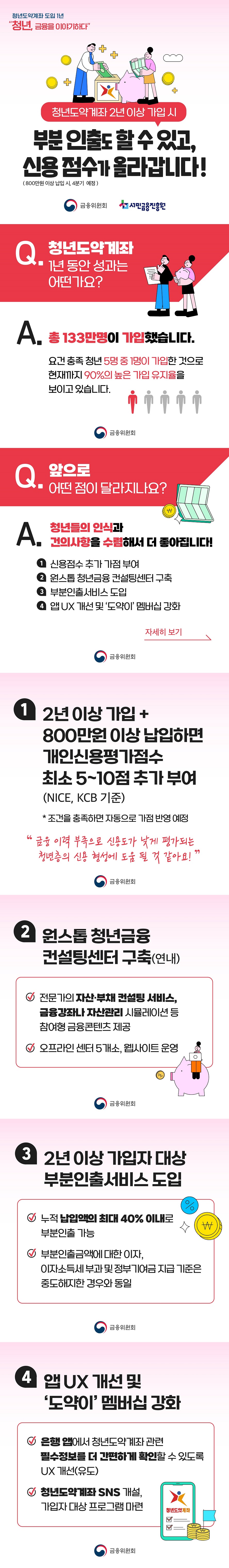 ‘청년도약계좌’ 2년 이상 가입하면 부분인출도 가능하다는 점! 청년도약계좌에 대해 알려드립니다. 자세한 사항은 아래 카드뉴스를 통해 확인해 보세요.😊 출처 : 금융위원회 복지소식/홍보소식 2024.08.09