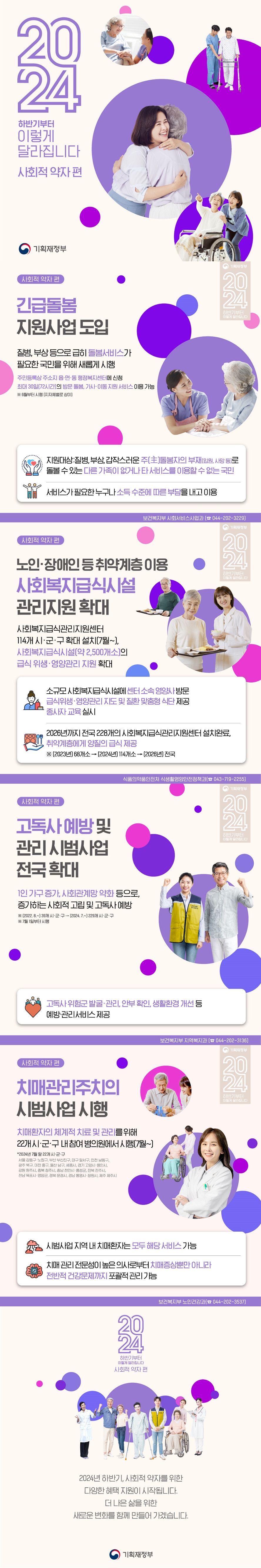 ‘치매관리주치의 시범사업’ 등 하반기 달라지는 사회적 약자 정책 4가지! 하반기 사회적 약자를 위한 정책'치매관리주치의 시범사업'을 소개합니다. 자세한 사항은 아래 카드뉴스를 통해 확인해 보세요.😊 출처 : 기획재정부 복지소식/홍보소식 2024.08.07