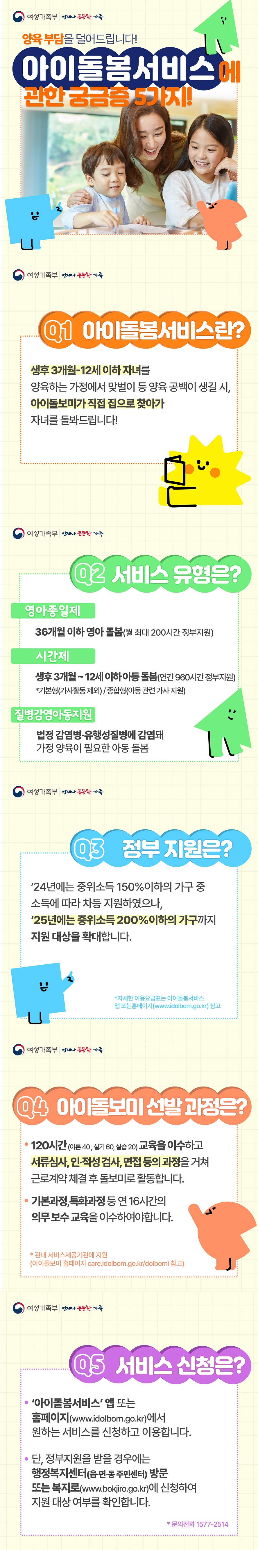 ‘아이돌봄서비스’ 궁금증 세가지 아이돌봄서비스에 대해 알려드립니다. 자세한 사항은 아래 카드뉴스를 통해 확인해 주세요.😊 출처 : 여성가족부 ▼ 또 다른 복지로를 소개합니다 ▼ 복지소식/홍보소식 2024.12.13