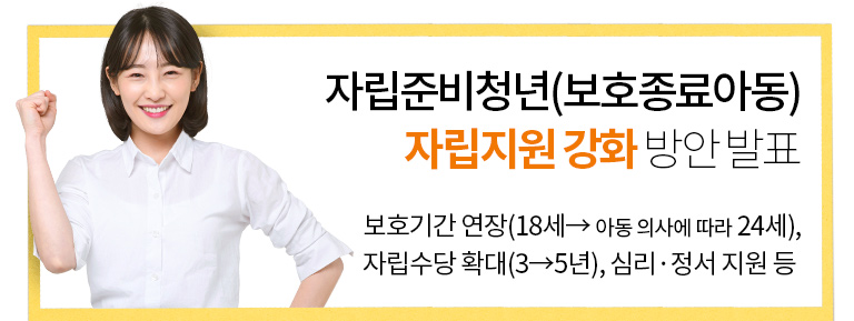 「보호종료아동 지원강화 방안」을 발표하였습니다.