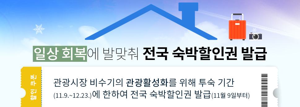 일상 회복에 발맞춰 11월 9일부터 전국 숙박할인권 발급