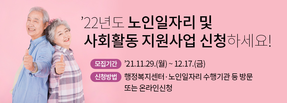 2022년 노인일자리 및 사회활동 지원사업 오늘부터 신청하세요 (11.29.~12.17.)