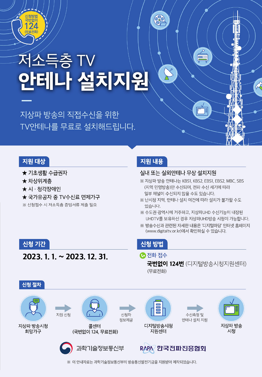 지상파 방송 직접수신 안테나를 설치 지원 사업을 안내 해드립니다.