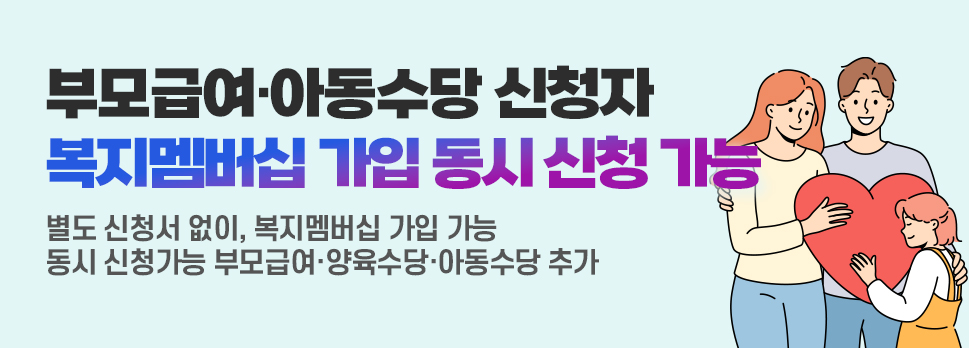 - 복지멤버십 동시 신청 가능 급여에 부모급여, 양육수당, 아동수당 추가 -