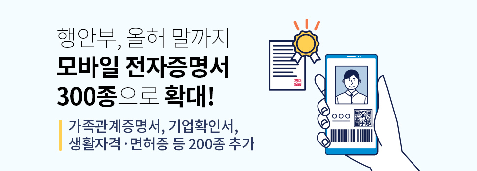 행안부, 올해 말까지 모바일 전자증명서 300종으로 확대!