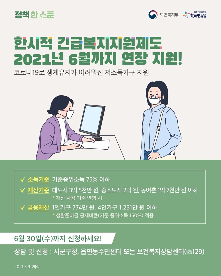 사각지대 저소득층 80만 가구에 한시적 생계지원금 50만원 지원