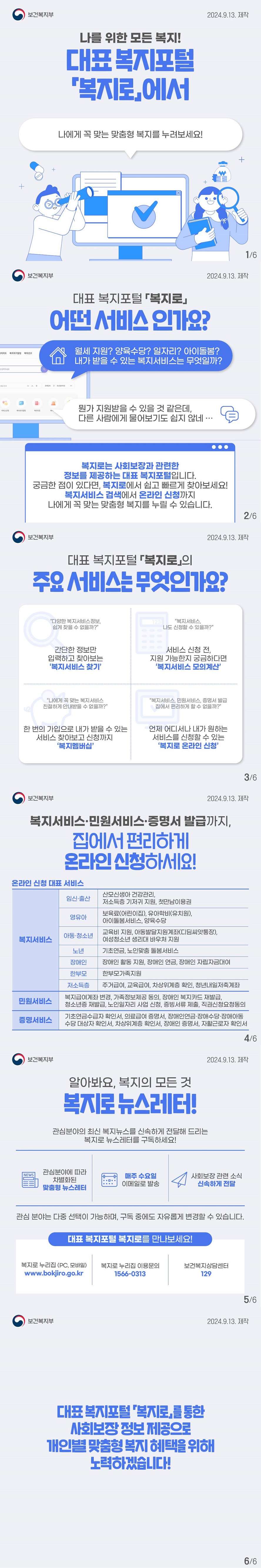 [동영상] 복지로 삼남매에게 새 집을 찾아주세요! 대한민국 대표 복지포털 복지로! 각 부처의 복지 서비스 정보를 한눈에 확인 할 수 있도록 '복지알림이'와 복지서비스 온라인 신청, 우리동네 시설찾기 등의 실생활 중심의 복지정보를 제공하는 대한민국 대표 복지포털 '복지로'를 영상으로 소개해 드립니다. 내게 필요한 복지혜택을 찾고 도움이 필요한 이웃을 살피고 부정수급을 줄이기 위한 복지로 삼남매의 새 집을 함께 구경해 볼까요? 바로가기 클릭! ▶
